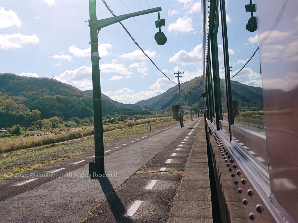 仁保で小休止。山間の小駅というロケーションがカーブしたホームと相まってよいよい。
